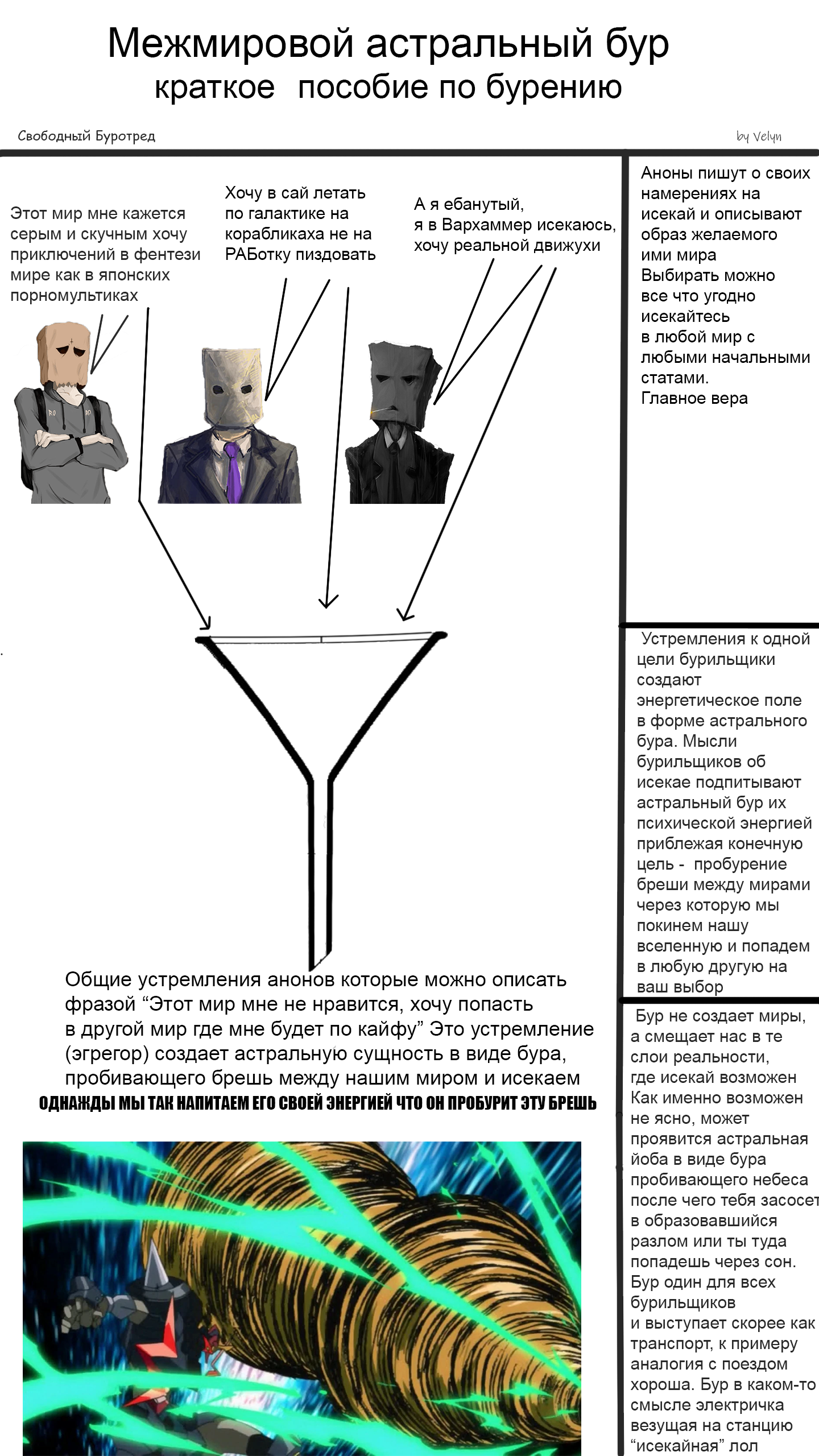 Астральный бур - энергетическая концепция, сформированная коллективным намерением анонов об исекае и нацеленная пробурить брешь между мирами, дав каждому кто к нам присоединиться возможность попасть из нашего мира в любой мир и с любыми вводными на его выбор